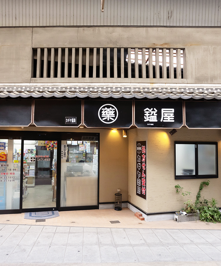 カギヤ薬局は1914年(大正3年)の創業以来、東近江市の八日市本町・妹町を中心に地域に根ざす「かかりつけ薬局」として皆様に支えられてまいりました。これからも変わらずに、薬剤師をはじめとするスタッフが一丸となって地域の皆様がいつまでも元気で笑顔でお過ごしいただけるように、お薬に関すること、そして健康面の相談ができる場所でありつづけたいと思っております。